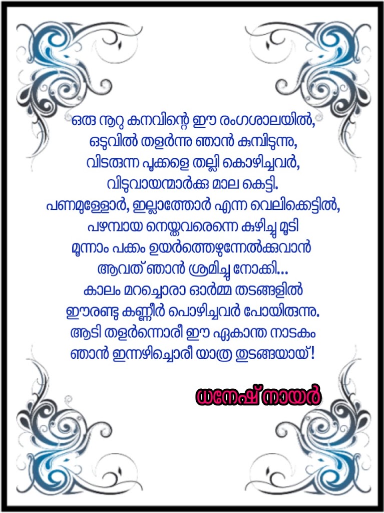 ആടി തളർന്നൊരീ ഈ ഏകാന്ത നാടകം